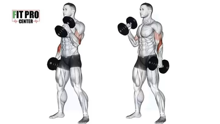 - جلوبازو چکشی با دمبل کراس ایستاده (Standing Cross-Body Dumbbell Hammer Curl)